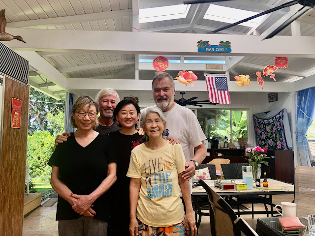 昨夜、夕食に来れなかったヘラがカラフルなムームーを着てご挨拶に立ち寄ってくれました。ハンスとドイツ語で楽しそうに話しています。