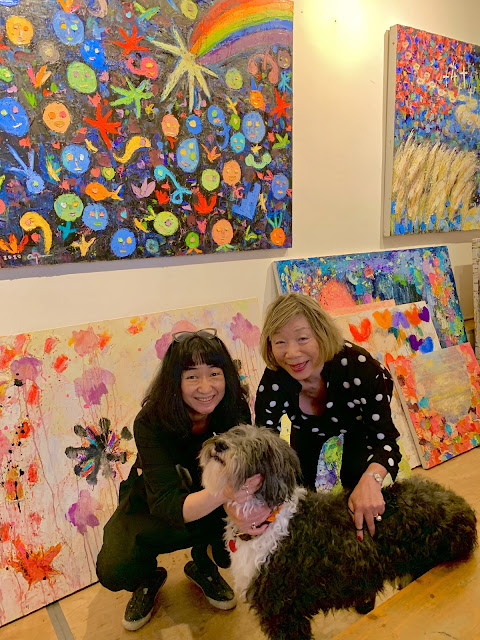 | 舞さんと。後ろに息子殿が。あやねさんの絵画に囲まれて。 |